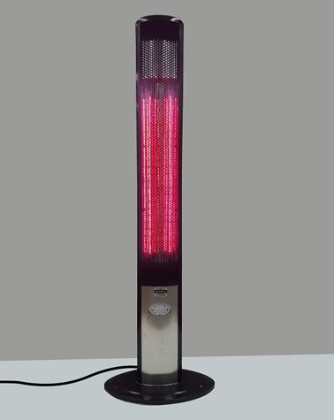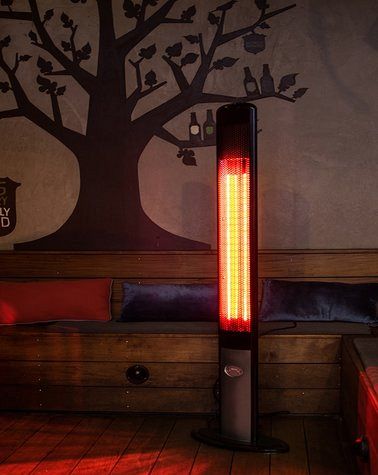This floor standing infrared heater provides targeted heat instantly, using low frequency. The heater combines a robust structure with excellent design, making the product ideal for both commercial and domestic use. Remote control for ease of use and Halogen tubes that provide not only the heat but also a gentle ambient light.